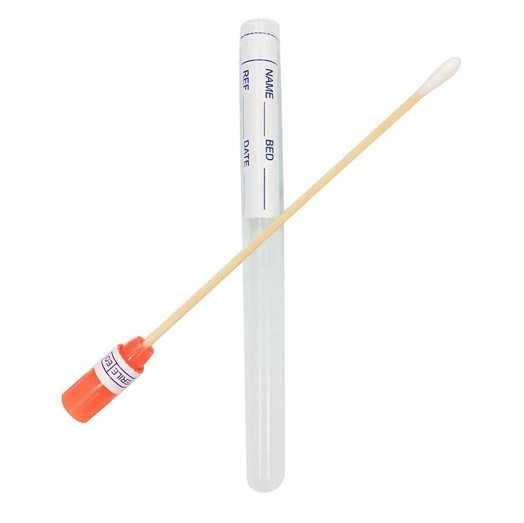 Exudat ambalat individual si sterilizat, format din batul de recoltare si un tub din plastic pentru pastrare.