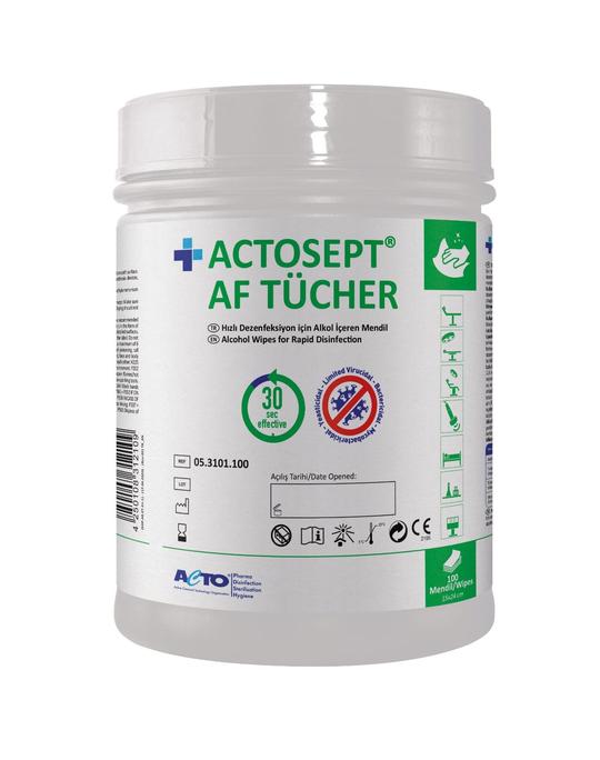 Soluția Actosept® AF are bactericide (inclusiv MRSA, VRE, A. baumannii), fungicide (C. albicans), tuberculocide și virucide (virusuri Rota și toate virusurile invelite, incluzand HBV / HIV / HCV / BVDV, Vaccinia- Virusuri Ebola- și Corona), in termen de 30 de secunde