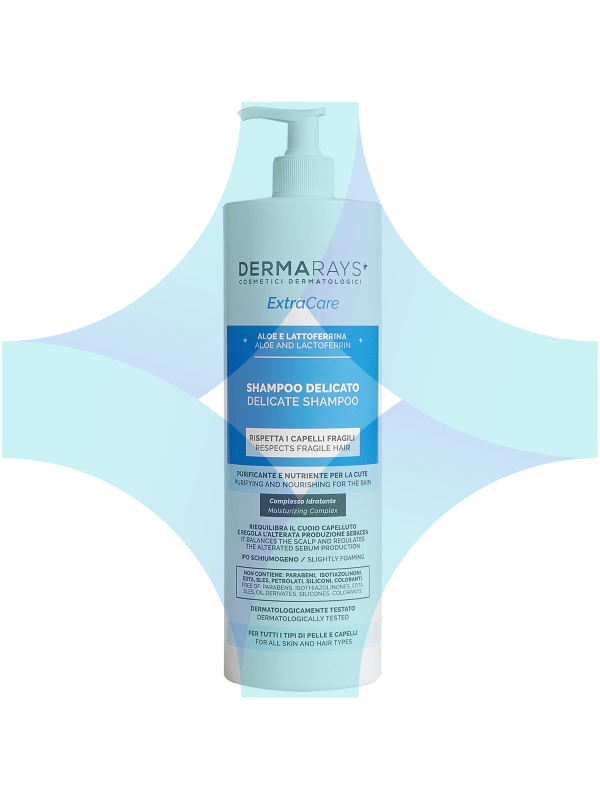 DermaRays ExtraCare conține un complex hidratant care formează o rețea moleculară subțire de biopolimeri naturali, în care ingredientele active, cum ar fi acidul Hialuronic, Trehalose, Uree și Serine, sunt dispersate și sunt utile pentru readucerea scalpului la nivelul fiziologic al umidității.