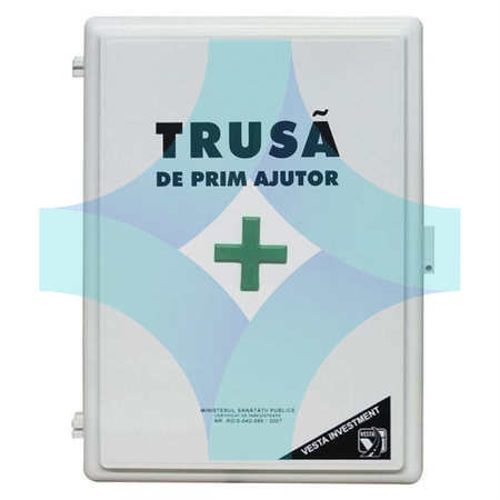 Cutia si continutul sunt conforme cu Ordinul Ministrului Sanatatii 427/14.06.2002 si ordinului comun al Ministrului Muncii Nr. 508/20.11.2002 si al Ministrului Sanatatii Nr.933/25.11.2002 si sunt certificate de Ministerul Sanatatii Publice cu certificatul Ro/S-042-088/2007.